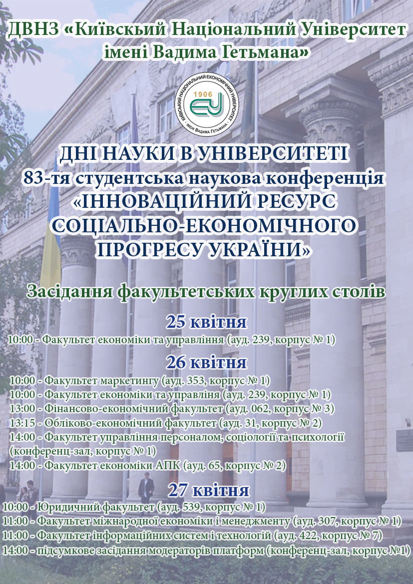 - 83 щорічна студентська наукова конференція «Інноваційний ресурс соціально-економічного прогресу України»