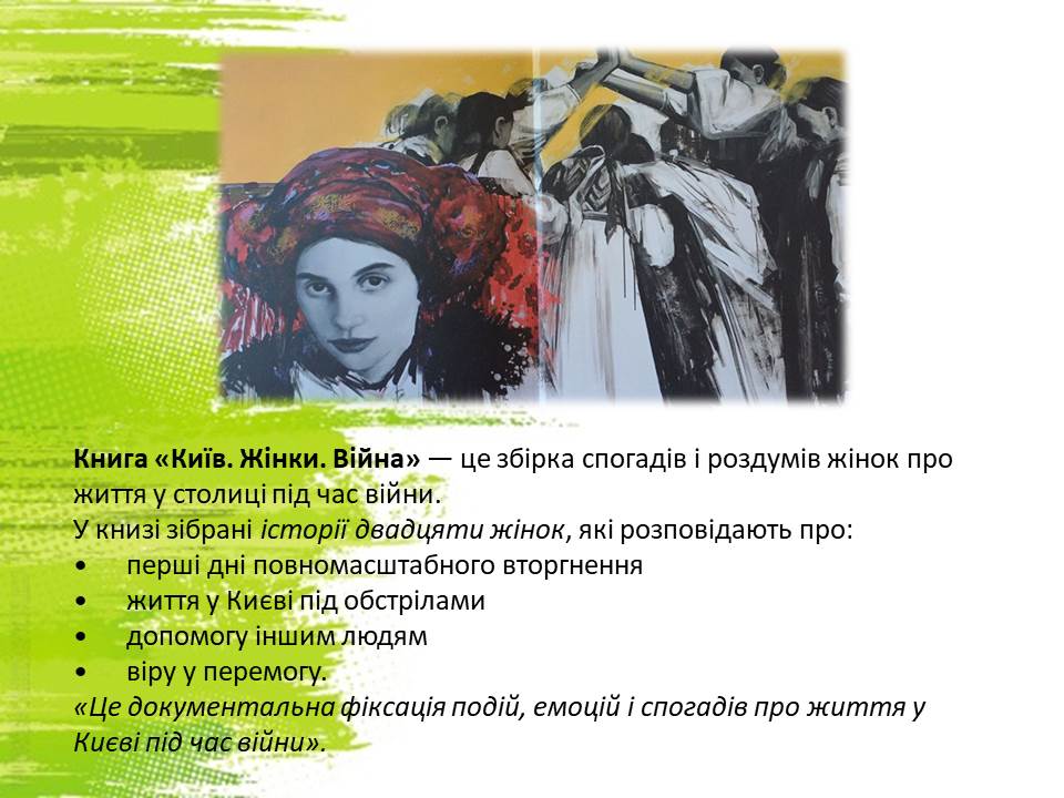 Україна – незламна, єдинаПродовжуємо рубрику, в якій будуть представлені книги про російсько-українську війну "Життя триває. Київ бачив багато на своєму віку. Переживе і це. І ми йому допоможемо, як і він допомагає нам." Міла Іванцова, українська письменниця, перекладачка, журналістка й педагогиня.