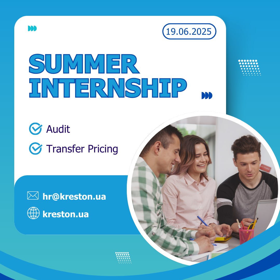 📢 Kreston Ukraine відкриває набір на літнє оплачуване стажування до команди Аудиту та Трансфертного ціноутворення!