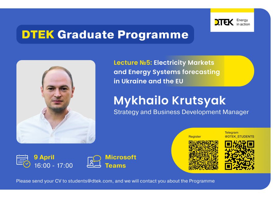 - Лекція "Electricity Markets and Energy Systems forecasting in Ukraine and EU"