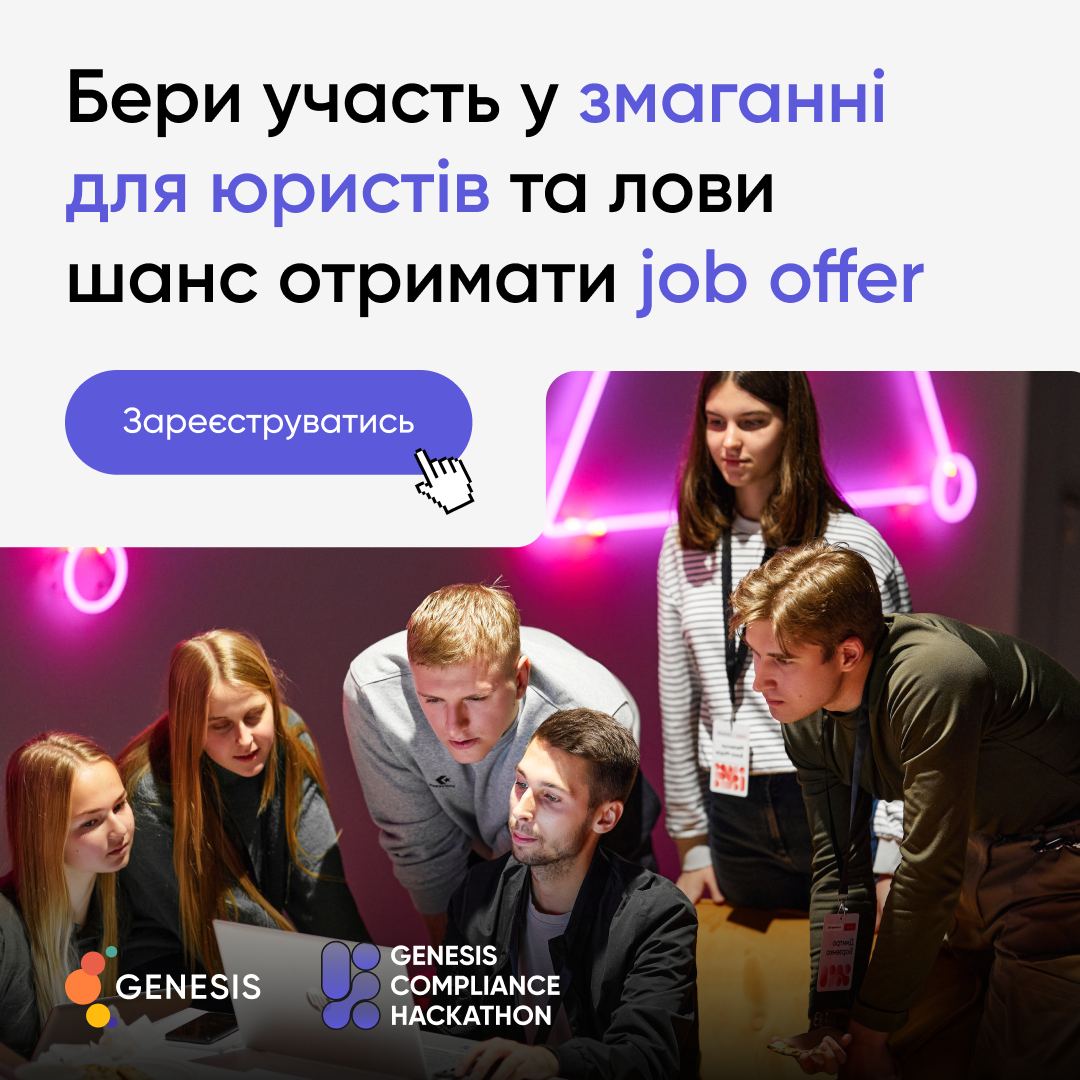 Genesis Compliance Hackathon: Одноденне змагання для юристів01 Березня 2024р.![]() #можливості_перспектива Запрошуємо взяти участь в одноденному змаганні для юристів – Genesis Compliance Hackathon. 🏆У чому особливість змагання? На тебе чекають реальні виклики бізнесу. Організатором є IT-компанія Genesis. Вона є ключовим бізнес-партнером Meta, TikTok, Google та Snapchat в центральній та східній Європі, тож комлаєнс-фахівці Genesis мають можливість працювати з менеджерами цих компаній напряму. Для хакатону вони розробили кейс, оснований на їхніх щоденних завданнях. 💻 Про що хакатон? За 6 годин проаналізувати та оцінити продуктовий, маркетинговий та монетизаційний аспекти нового ІТ-продукту з погляду політик технологічних компаній. 👀 Що отримають учасники? – Нові знання від експертів з комплаєнсу та нетворк. – Цінні призи від компанії. – Найкращі учасники матимуть шанс отримати job offer. 📍 Коли та де? 24 березня, Київ. 📌 Кількість учасників — обмежена, відбір відбуватиметься за CV та мотивацією. Змагання командне, однак можна реєструватися й індивідуально. 🔗 Подавай заявку до 15 березня. |