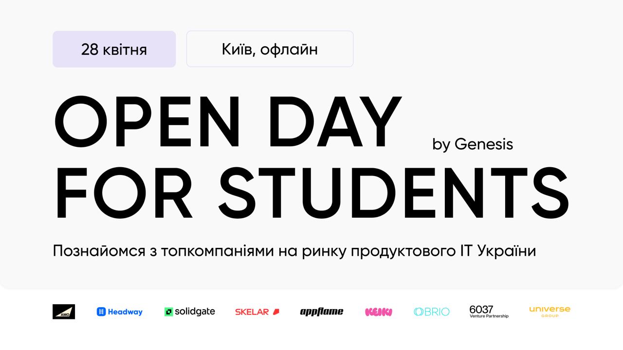 Open Day for Students – одноденний фестиваль для студентів Києва про карʼєру у продуктовому ІТ. Учасники познайомляться з топкомпаніями України та зможуть отримати свій омріяний job offer.