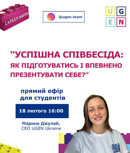 Запрошуємо студентів долучитись до прямого ефіру в інстаграм UGEN, де ми розберемо всі секрети вдалої співбесіди.