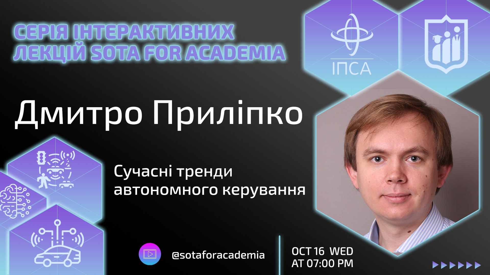 📢 Серія інтерактивних лекцій «SOTA for Academia»: «Сучасні тренди автономного керування» від Дмитра Приліпка