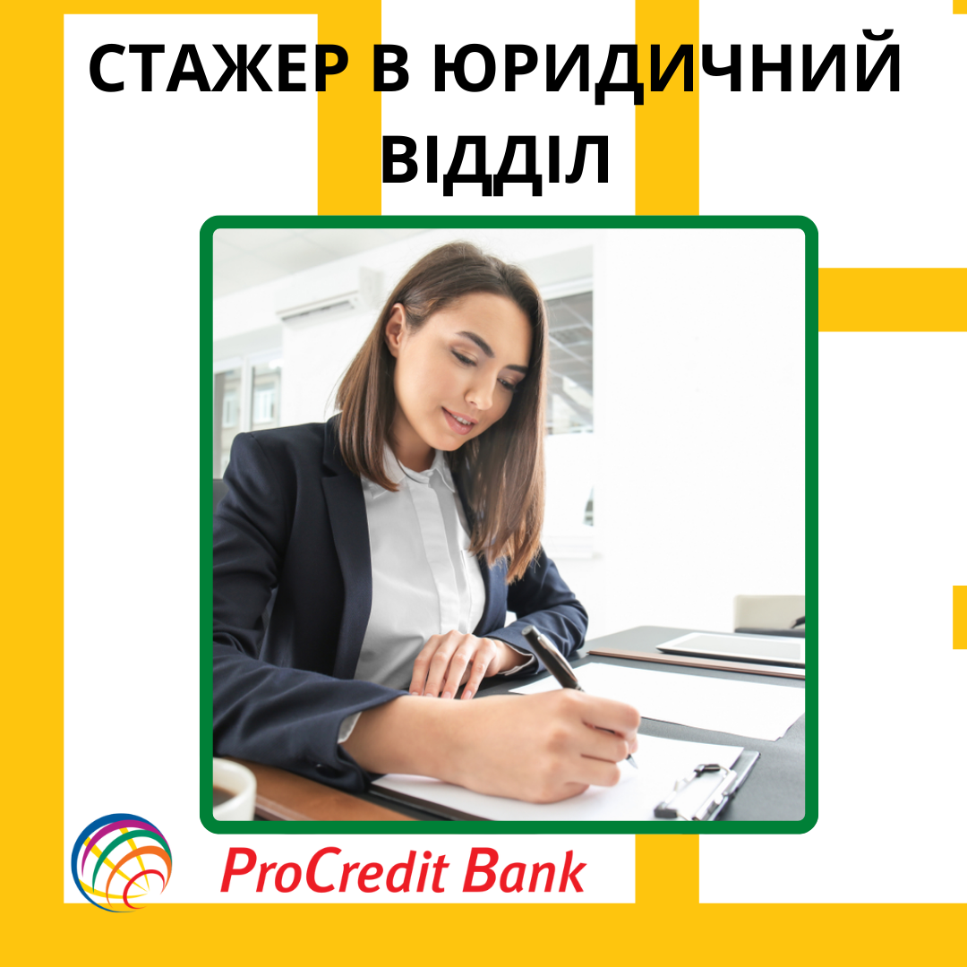 🏢 Скористайся шансом пройти стажування в Юридичному відділі німецького банку ProCredit Bank, що працює в Україні вже понад 20 років.
