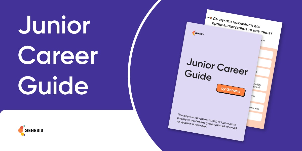 Для розв’язання цього питання команда Genesis підготувала Junior Career Guide, який стане в пригоді під час пошуку роботи та проходження етапів відбору в компанію.