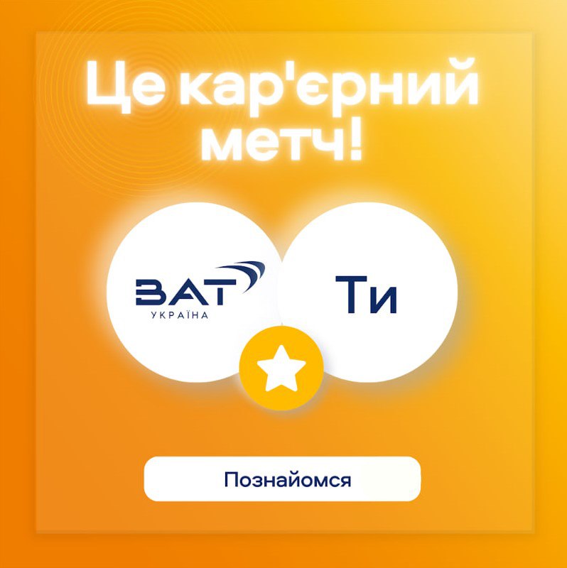 ВАТ Україна (British American Tobacco) запустила опитувння для студентів старших курсів та випускників "Тест на сумісність з компанією". Лови шанс дізнатись, яка твоя сумісність із міжнародною компанією 🤩