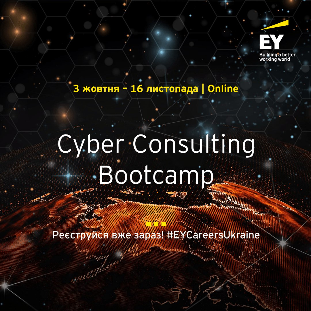 EY Cyber Consulting Bootcamp13 Вересня 2023р.![]() #можливості_перспектива EY Cyber Consulting Bootcamp повертається! 🚀✨ Цієї осені у вас знову буде можливість на 7 тижнів зануритись у світ ІТ-консалтингу, здобути практичні знання та прокачати навички роботи у команді. На учасників чекає: ✅ інсайти від фахівців напряму технологічних ризиків EY та досвід їх реальних робочих завдань ✅ прикладні лекції за темами: Privacy, Information Security organization, IS027001 для системи управління інформаційною безпекою, SOC Reporting, Penetration Testing and Vulnerability Assessment, IT Strategy and Governance та ін. ✅ проєктна робота в команді та практичні завдання ✅ сертифікат про проходження курсу ✅ можливість отримати job offer до відділу технологічних ризиків EY в Україні. 🗓 Коли: щовівторка та щочетверга о 16:00, починаючи з 3 жовтня. 🌐 Формат: Zoom-сесії. Кому буде цікаво? Студентам та нещодавнім випускникам технічних спеціальностей за умови наявності базових знань з інформаційної безпеки. Етапи відбору: 1️. реєстрація 2️. тестування на логіку та рівень володіння англійською мовою. Реєструйся до 28 вересня | 10:00 за посиланням |