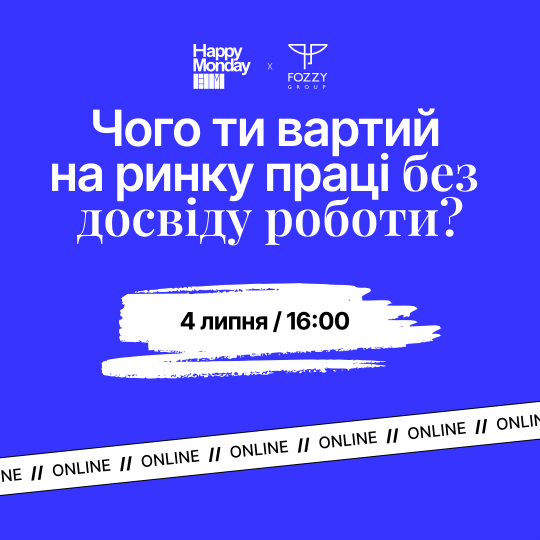 Шукаєш першу роботу, але не знаєш, чого вартуєш без досвіду і як зацікавити собою роботодавців? 🤯 Гоу розбиратись у цьому на вебінарі «Чого ти вартий на ринку праці без досвіду роботи?» разом з Fozzy Group та Happy Monday!
