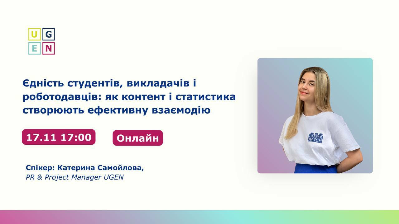 🎦 Вебінар: «Єдність студентів, викладачів і роботодавців: як контент і статистика створюють ефективну взаємодію» від команди UGEN