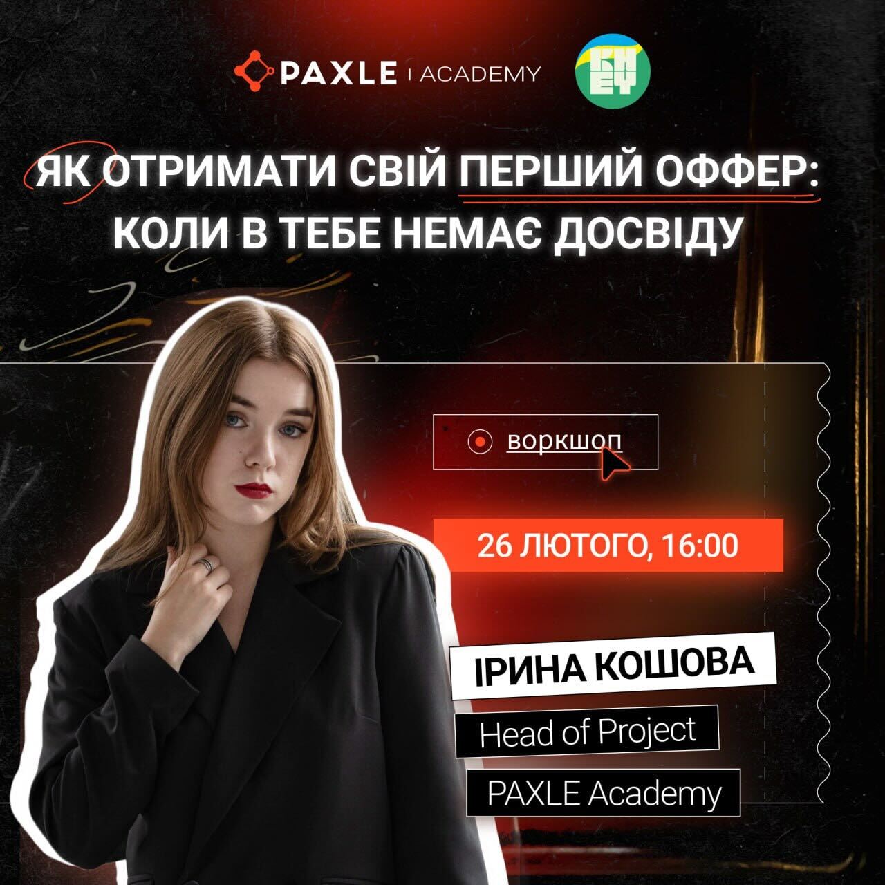 🎤 Спікер: Ірина Кошова, Head of Project at Paxle Academy