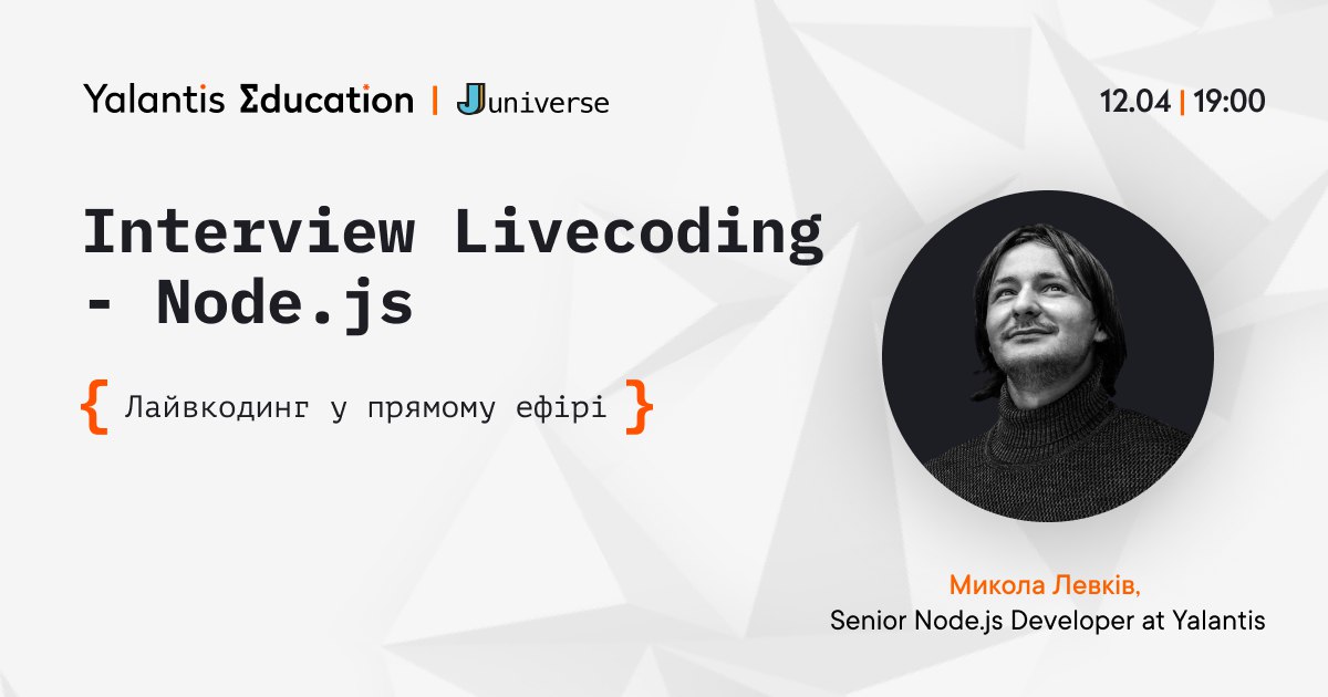 Вже наступного тижня Микола Левків, Senior Node.js Developer компанії Yalantis, проведе livecoding разом trainee розробником у прямому ефірі!
