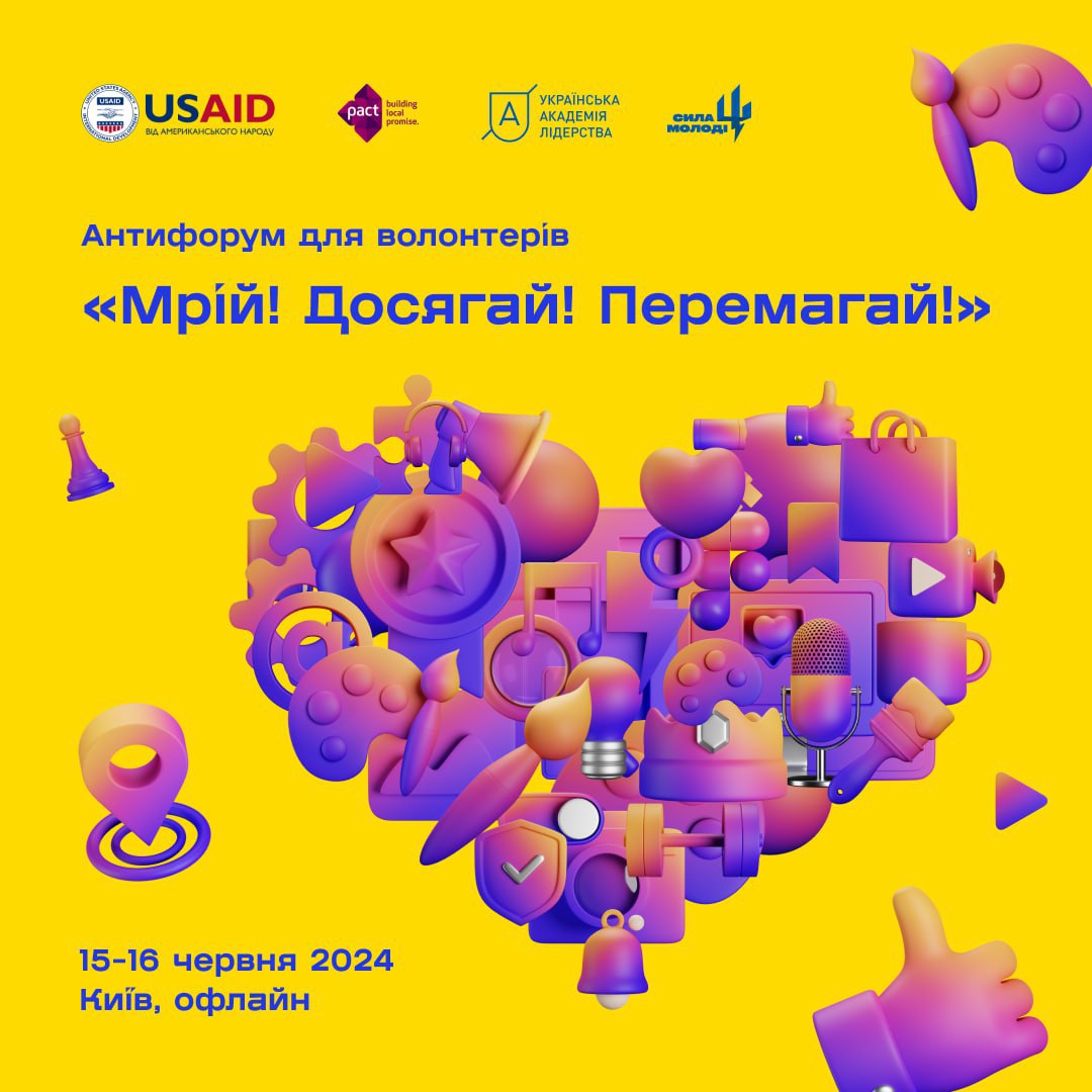 Антифорум10 Червня 2024р.![]() #можливості_перспектива 😉 Тобі 18-25 років? Хочеш увірватися у волонтерський рух, але не знаєш, з чого почати? Шукаєш нові можливості для саморозвитку та нетворкінгу? Бери участь у Антифорумі для волонтерів «Мрій! Досягай! Перемагай!» від Координаційного центру «Сила молоді» Української академії лідерства! На тебе чекатимуть: ✔️ знайомства з громадськими та благодійними організаціями у форматі гри; ✔️ командні завдання, що прокачають твої лідерські навички; ✔️ подарунки для найактивніших учасників; ✔️ нетворкінг та безліч можливостей для волонтерства. ⏳Коли? 15-16 червня 📍Де? м. Київ, наживо 👉 Не гай часу — заповнюй анкету зараз! І пам'ятай: кожне завтра розпочинається вже сьогодні! Захід організовує ГО «Українська академія лідерства» в рамках Програми сприяння громадській активності «Долучайся!», що фінансується Агентством США з міжнародного розвитку (USAID) та здійснюється Pact в Україні. Зміст цього заходу є винятковою відповідальністю Pact та його партнерів і не обовʼязково відображає погляди USAID або уряду США. |