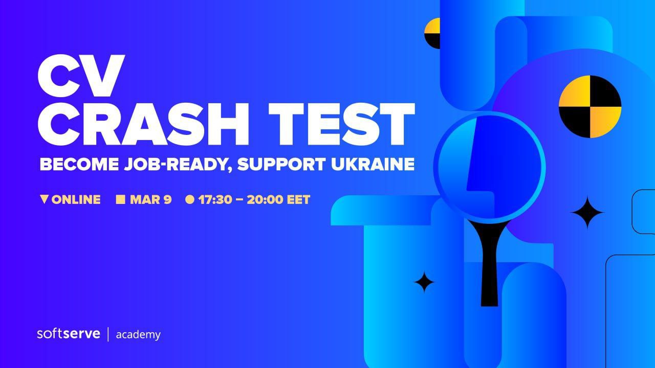 SoftServe Academy запрошує на "CV Crash Test", де ти не лише дізнаєшся купу корисних лайфхаків, а й зможеш допомогти наблизити Перемогу України 🇺🇦
