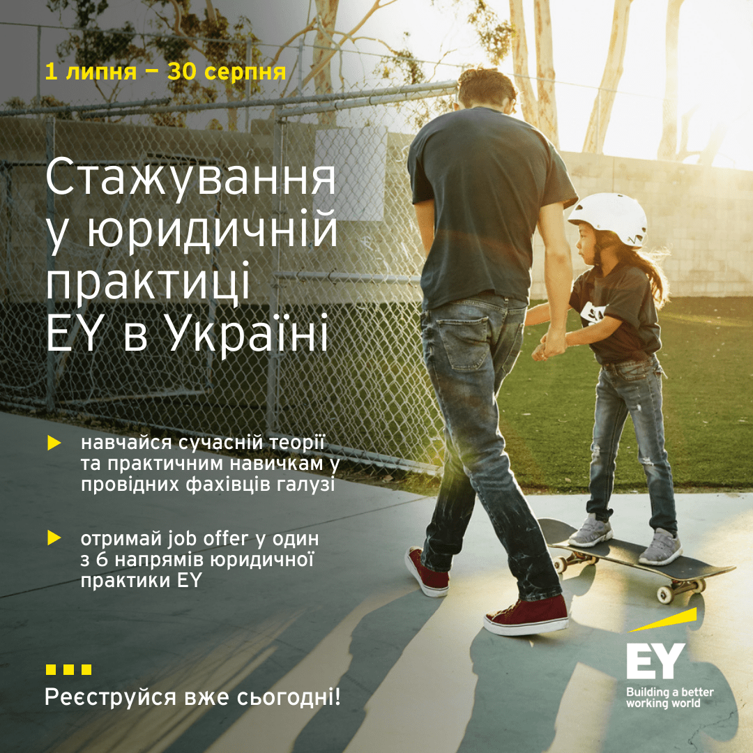 Юридичне стажування від EY в Україні ⚖️22 Травня 2024р.![]() #можливості_перспектива Зустрічай нову програму юридичного стажування від EY в Україні ⚖️ Це твоя можливість почати карʼєру у міжнародній компанії без досвіду роботи! Стажування містить як теоретичне навчання, так і практичну роботу за напрямами: ✔️ публічний сектор; ✔️ енергетична практика; ✔️ фінансова практика; ✔️ корпоративне право; ✔️ інфраструктурні проєкти; ✔️ M&A. Ти отримаєш: 💼 участь в оплачуваній програмі стажування у юридичній практиці EY в Україні; 🎓 сучасну теорію та практичні навички від провідних фахівців нашої команди; 💼 можливість отримати job offer у фіналі стажування. 👥 Кому буде цікаво: студентам та нещодавнім випускникам правничих спеціальностей з рівнем володіння англійською B1+. 📅 Тривалість: 1 липня — 30 серпня 2024. 📍 Формат: гібридний. Щоб стати учасником потрібно: 1. Заповнити анкету; 2. Пройти онлайн тестування з англійської та розв'язати кейсове завдання; 3. Пройти співбесіду з представниками компанії. Набір на стажування вже відкрито, подавай заявку до 6 червня, 17:00 за посиланням. |