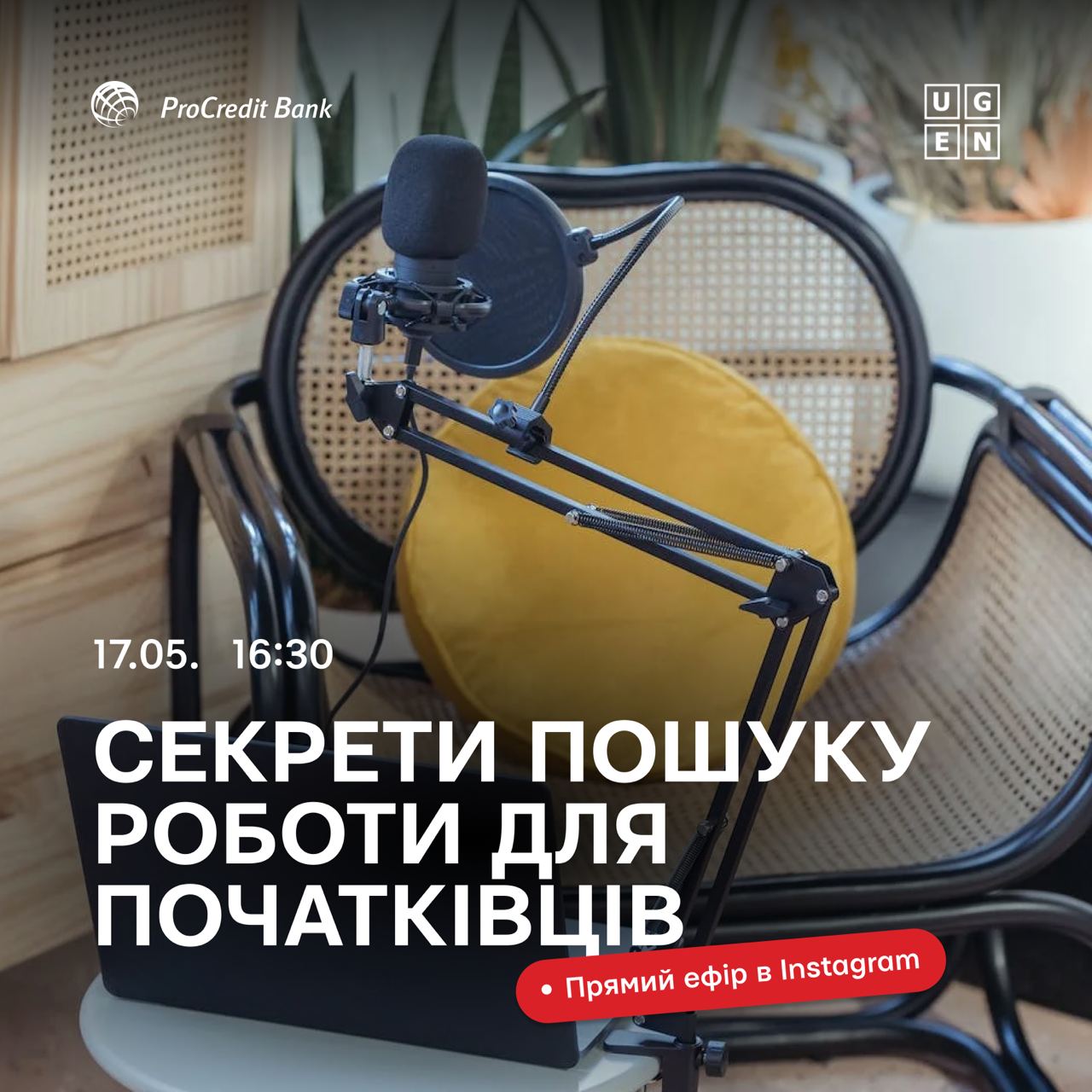 Команда HR у ProCredit Bank разом з UGEN ВЖЕ СЬОГОДНІ проведе ефір на своїй сторінці в Instagram та розкаже тобі:
