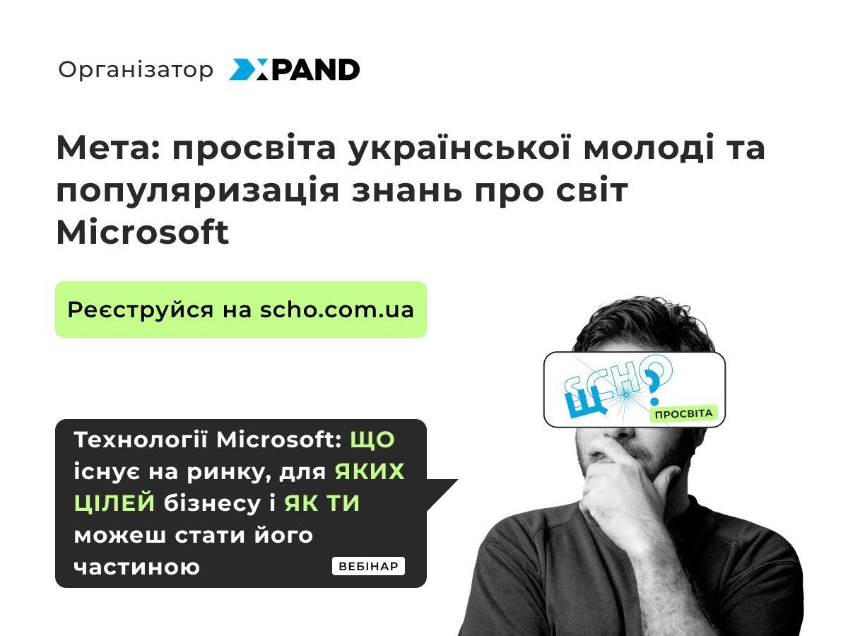 Технології Microsoft: що існує на ринку, для яких цілей і як ти можеш стати його частиною21 Листопада 2023р.![]() #можливості_перспектива 🌐 Цьогоріч компанія Xpand організовує онлайн вебінар ЩО? Просвіта з темою “Технології Microsoft: що існує на ринку, для яких цілей і як ти можеш стати його частиною”. У 2023 в рамках ініціативи “SCHO/ЩО?”, яка відбувається щороку, компанія вирішила спрямувати фокус зокрема на студентів останніх курсів технічних спеціальностей, майбутніх бізнес-аналітиків та початківців, аби ґрунтовно розповісти про переваги та можливості світу Microsoft. 🙌 На онлайн вебінарі ЩО? Просвіта студенти зможуть дізнатися про: 🔹 Глобальні тренди і новітні технології світу Microsoft 🔹 Must have рішення та продукти для бізнесу 🔹 Технології необхідні компаніям та їх застосування 🔹 Поради та інсайти про можливості Microsoft для українців 🗓 Дата проведення: 30 листопада 2023 року о 15:00 ⏰ Тривалість: 60 хв 🌍 Місце проведення: Microsoft Teams (посилання на вебінар з’явиться на пошті учасника одразу після реєстрації, вхід доступний з будь-якого пристрою) 🆓 Вартість: безкоштовно 🇺🇦 Мова: українська 👀 Детальніше про вебінар Реєстрація (обов’язкова) |
