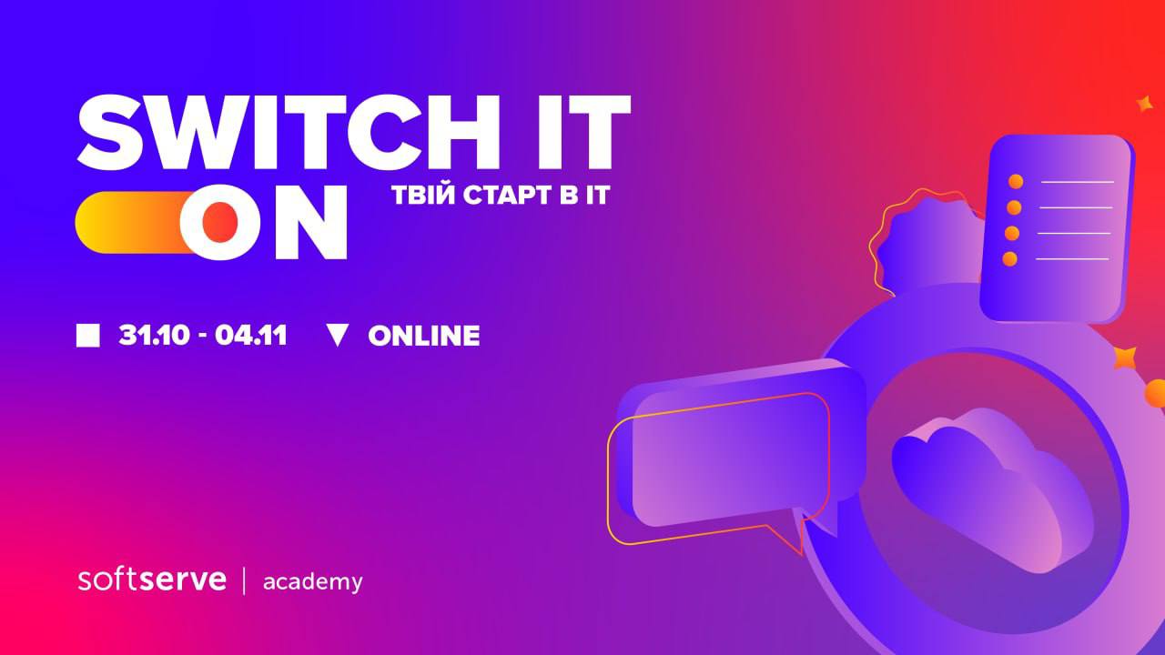 Відчуваєш, що твоє місце в ІТ, але не знаєш, з чого почати? Приваблює світ технологій, але бракує технічних знань, бо ти працюєш у іншій сфері?27 Жовтня 2022р.Приходь за порадою до експертів - відвідуй серію із 5 вебінарів SWITCH IT ON. Ментори компанії SoftServe та світчери, що вже працюють в ІТ, поділяться практичними порадами та розкажуть про свій шлях переходу. - 31.10, 17:00 | ІТ Компас: Орієнтир перед стартом кар’єри