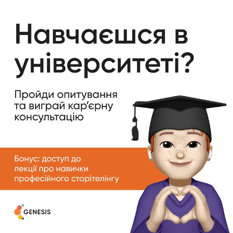 - Проходь опитування та бери участь у розіграші трьох кар’єрних консультацій від Genesis Academy!