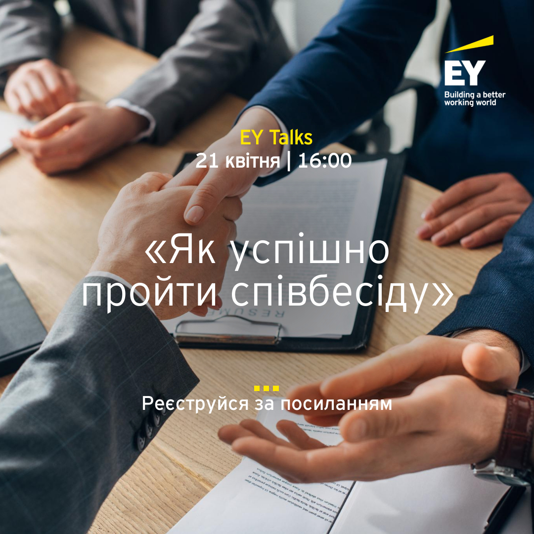 Ділимося радісною новиною: минулий воркшоп зі складання резюме зібрав стільки учасників та позитивних фідбеків, що ми поспішаємо відкрити реєстрацію на наступний івент нашого циклу майстер-класів з працевлаштування для молоді EY Talks!