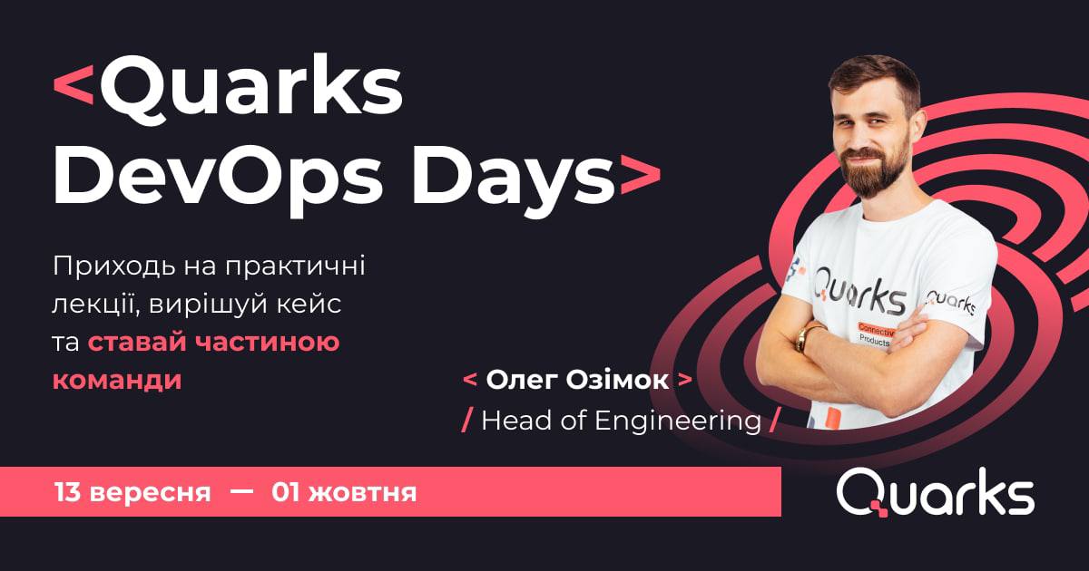 Приєднуйся до лекцій та воркшопу, вирішуй кейс та отримуй job offer на позицію DevOps engineer у продуктовій ІТ-компанії Quarks