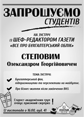 - Запрошуємо студентів, викладачів та усіх зацікавлених осіб на зустріч із шеф-редактором газети «Все про бухгалтерський облік»