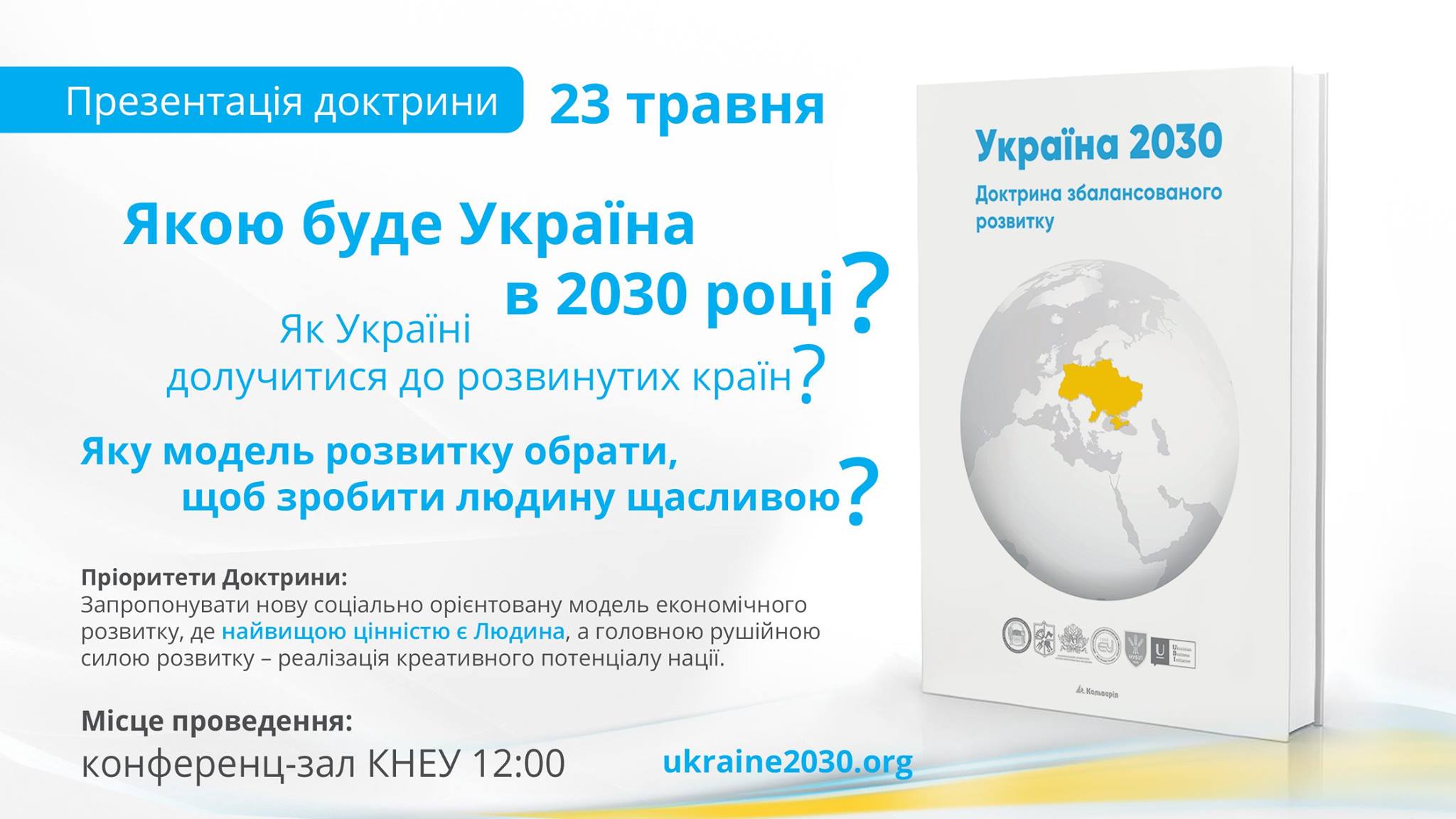 Відповіді на ці та інші запитання дані в Доктрині збалансованого розвитку «Україна 2030», презентація якої відбудеться 23 травня в конференц-залі (пр. Перемоги, 54\\ 1).