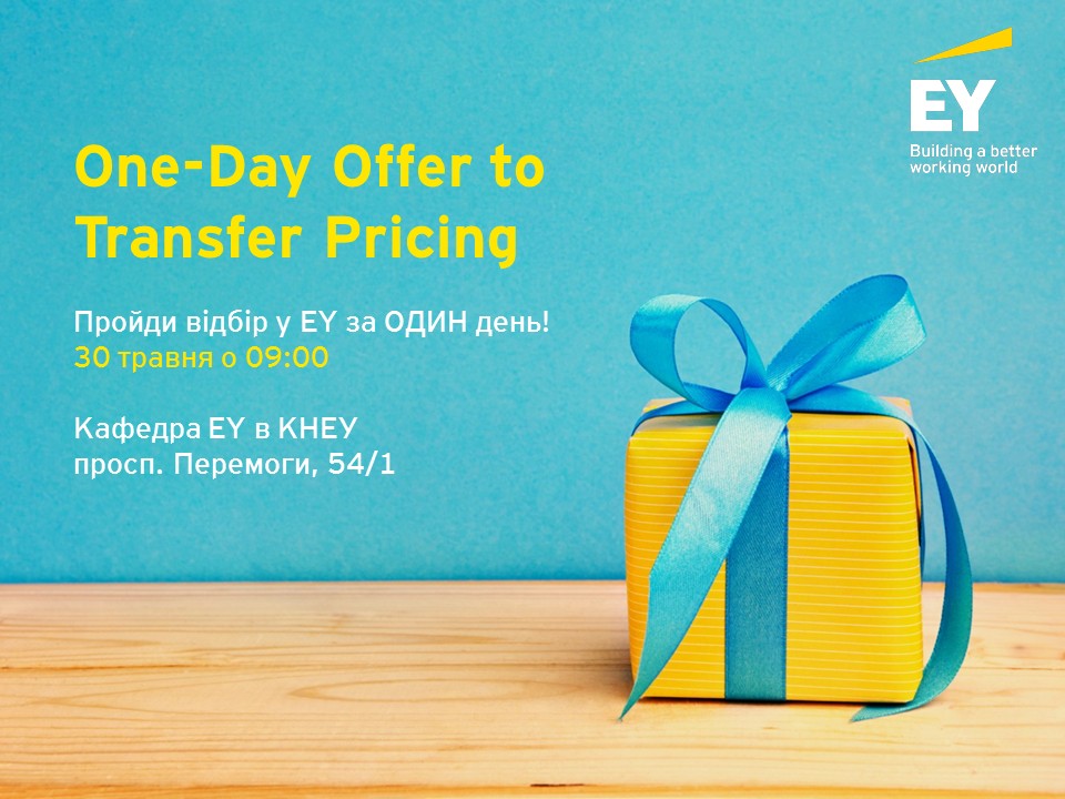 Тоді бери участь у ONE DAY OFFER TO TRANSFER PRICING та здобувай можливість пройти літню практику у відділі трансферного ціноутворення EY