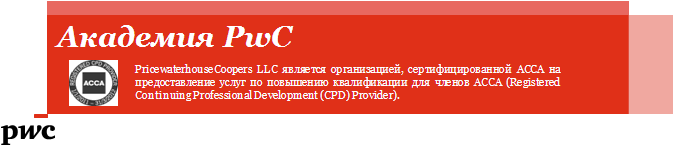 Академія PwC запрошує Вас прийняти участь у презентаціях у травні –червні 2012 року у Києві, Донецьку, Дніпроперовську!30 Червня 2012р.![]() Презентація «АССА ДипИФР» (Рос)Про кваліфікацію: дана програма розроблена для бухгалтерів та аудиторів, що мають навички складання та/або перевірки звітності по національним стандартам, що мають бажання набути навички складання звітності по МСФО та стати акредитованими Асоціацією Сертифікованих Присяжних Бухгалтерів (АССА) фахівцями. Реєстрація на презентацію: для підтвердження участі в презентації, будь ласка, заповніть форму реєстрації та відправте її факсом за номером 044 4906738 або електронною поштою: education.ukraine@ua.pwc.com Більш детальну інформацію про програму навчання Ви зможете знайти на сайті: Презентація CIMA «Управление эффективностью бизнеса» (Рос)