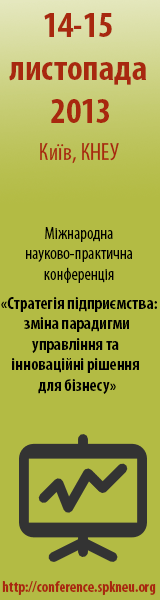 Міжнародна науково-практична конференція «Стратегія підприємства: зміна парадигми управління та інноваційні рішення для бізнесу»14 Листопада 2013р.![]() 14-15 листопада 2013 року у м. Києві на базі Державного вищого навчального закладу "Київський національний економічний університет імені Вадима Гетьмана" за ініціативою кафедри стратегії підприємств проводиться Міжнародна науково-практична конференція «Стратегія підприємства: зміна парадигми управління та інноваційні рішення для бізнесу». Мета конференції: конструктивне обговорення проблем сучасного бізнесу та пошук раціональних способів забезпечення стійкого економічного розвитку підприємств шляхом об'єднання зусиль представників наукової та освітньої спільноти, державних установ та підприємницьких структур. Під час роботи конференції заплановано:
