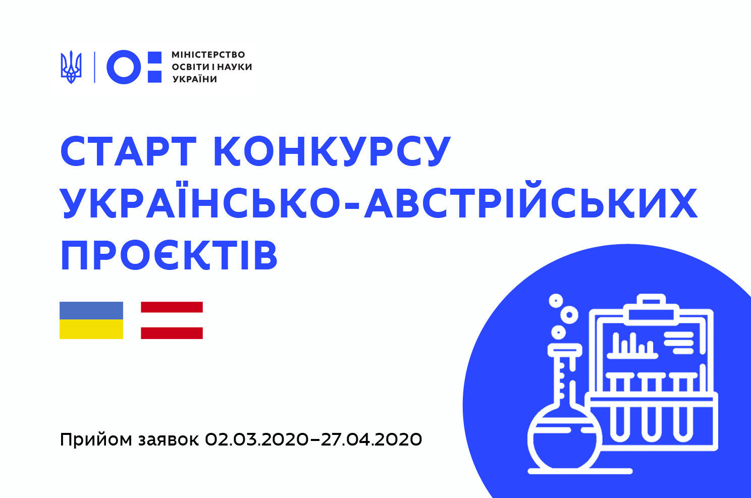Конкурс українсько-австрійських наукових проєктів27 Квітня 2020р.![]() СТАРТУВАВ КОНКУРС УКРАЇНСЬКО-АВСТРІЙСЬКИХ НАУКОВИХ ПРОЄКТІВ НА 2021-2022 РОКИ – ЗАЯВКИ ПРИЙМАЮТЬ ДО 27 КВІТНЯ Почався конкурс спільних українсько-австрійських науково-дослідних проєктів на 2021-2022 роки. Його оголосили сьогодні, 2 березня 2020 року, МОН України, Федеральне Міністерство науки, досліджень і економіки Республіки Австрія та Австрійське Агентство міжнародного співробітництва в галузі освіти та досліджень. Проєкти приймають до 27 квітня 2020 року. Подати їх можна за всіма науковими дисциплінами та тематичними напрямами. Конкурс відкритий для будь-яких науково-дослідних груп закладів вищої освіти, наукових установ та підприємств обох країн. Подання заявки Для участі в конкурсі потрібно подати: