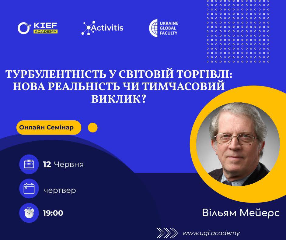 Онлайн-семінар UGF: Вільям Мейерс «Турбулентність у світовій торгівлі: нова реальність чи тимчасовий виклик?»12 Червня 2025р.![]()