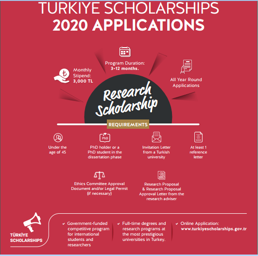 Türkiye Scholarships - це конкурсна стипендійна програма, що фінансується державою, яка присуджується видатним студентам та дослідникам з усього світу для здійснення денних програм або короткострокових програм у найпрестижніших університетах Туреччини. Мета програми: створити мережу майбутніх лідерів, які прагнуть зміцнити співпрацю між країнами.