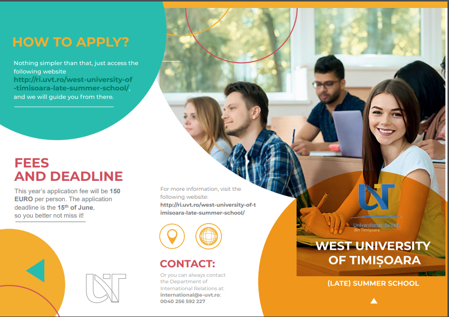 More information about applying to WUT (late) summer school at: http://ri.uvt.ro/west-university-of-timisoara-late-summer-school/