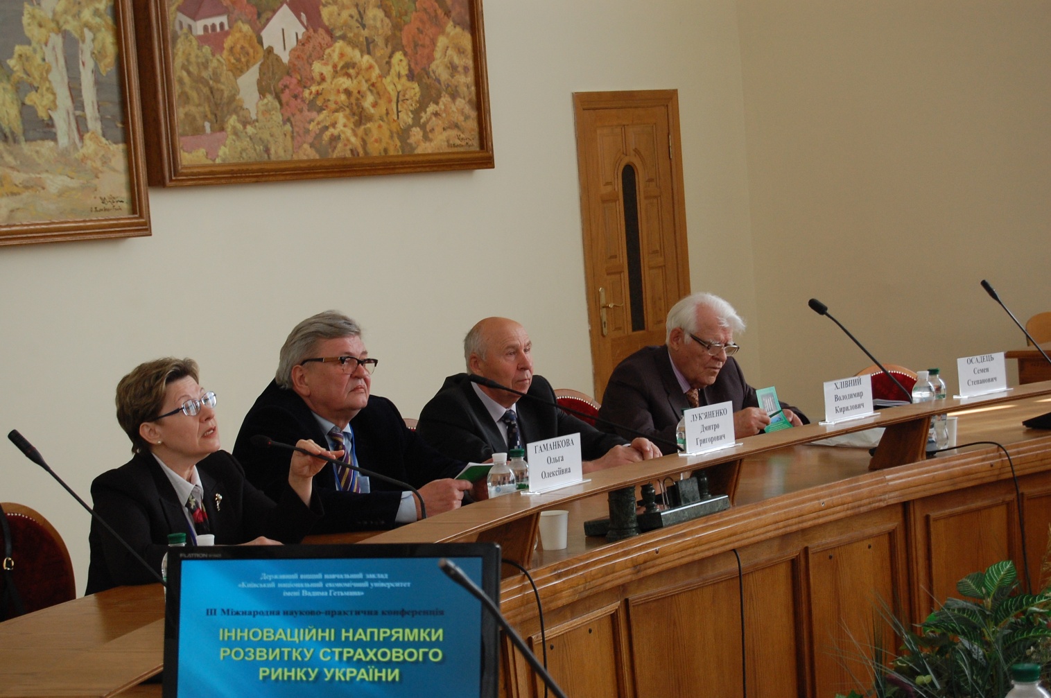 В Київському національному економічному університеті імені Вадима Гетьмана 19-20 квітня 2016 р. відбулася ІІІ Міжнародна науково-практична конференція «Інноваційні напрямки розвитку страхового ринку України». Конференція зібрала понад 160 учасників з України, Росії, Білорусі, Польщі, в тому числі представників державних органів; вищих навчальних закладів; страхового бізнесу; засобів масової інформації. Українська наука була представлена ученими з усіх регіонів України: Києва,Львова, Одеси, Тернополя, Харкова,Хмельницького, Івано-Франківська, Ірпеня, Кам’янця-Подільського, Кривого Рогута інших міст. В конференції взяли участь більшість вітчизняних докторів наук, яким присуджено цей ступінь за дослідження в галузі страхування.