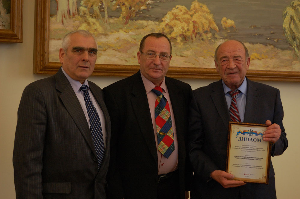 Університет був відзначений у номінації «Кращий навчальний заклад по впровадженню інноваційних технологій в навчальний процес». Знаки визнання заслуг навчального закладу вручені ректору Анатолію Федоровичу Павленку і декану кредитно-економічного факультету Михайлу Івановичу Дибі. На церемонії нагородження були присутні члени Вченої Ради Київського національного економічного університету імені Вадима Гетьмана, представники студентства.
