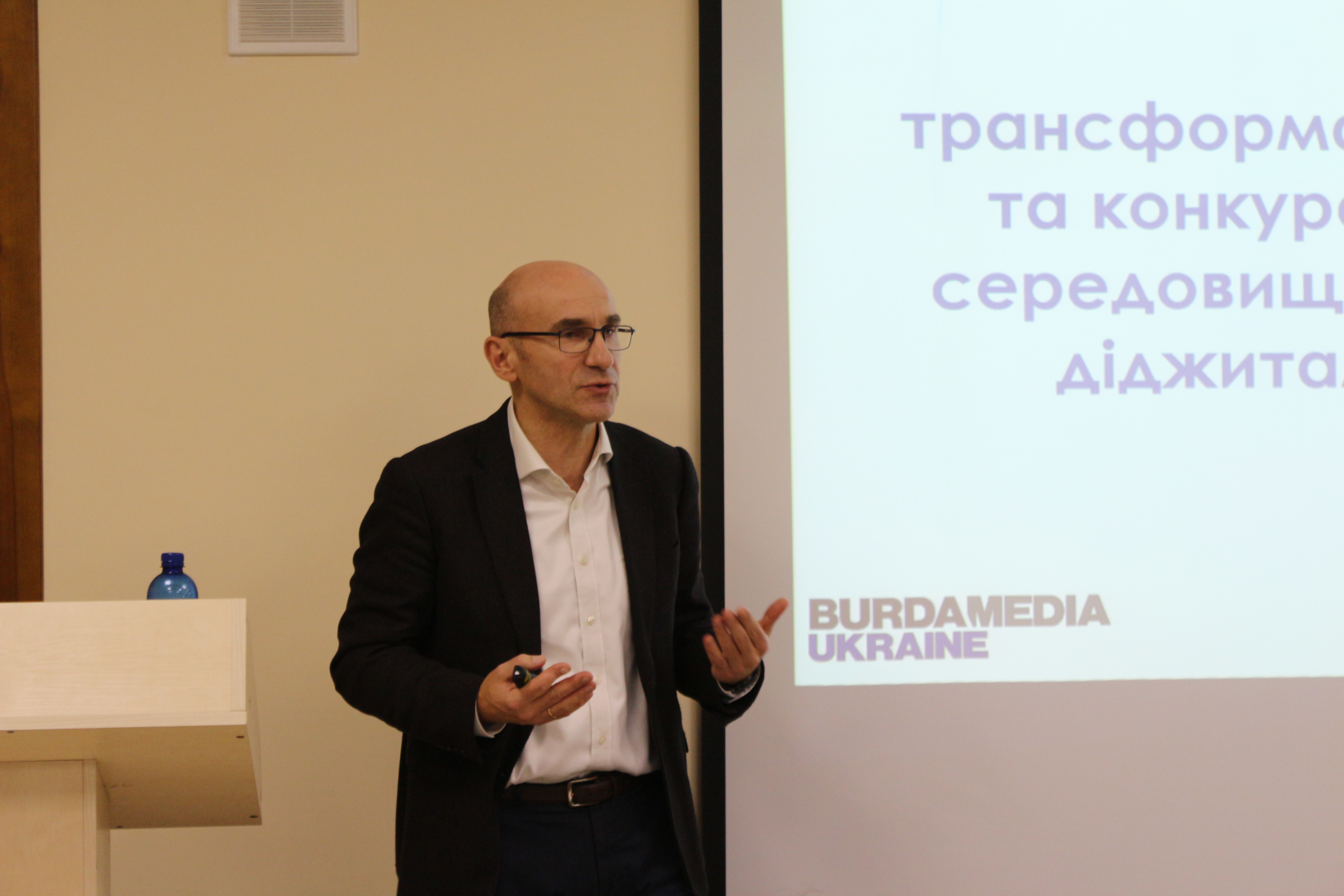Лекцію, насичену цікавими фактами та аргументами, прочитав у КНЕУ генеральний директор Burda media Ukraine Андрій Миколайович Вдовиченко. У 1993 році він із відзнакою закінчив наш університет, деякий час працював у Німеччині, а останні двадцять років - в компанії «Бурда Україна».