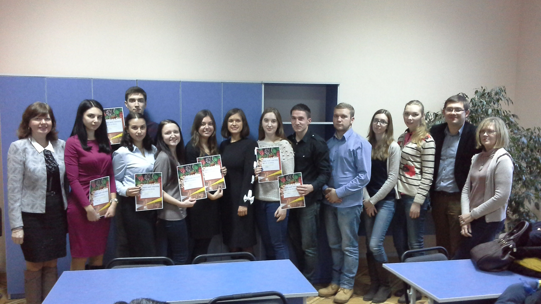 Представник компанії EY Єлизавета Максимець вручила 19 грудня сертифікати переможцям, студенти мали можливість поспілкуватись з директором Інституту вищої освіти КНЕУ, д.е.н., професором Ларисою Леонтіївною Антонюк та з деканом факультету міжнародної економіки і менеджменту Юрієм Мечиславовичем Солодковським.