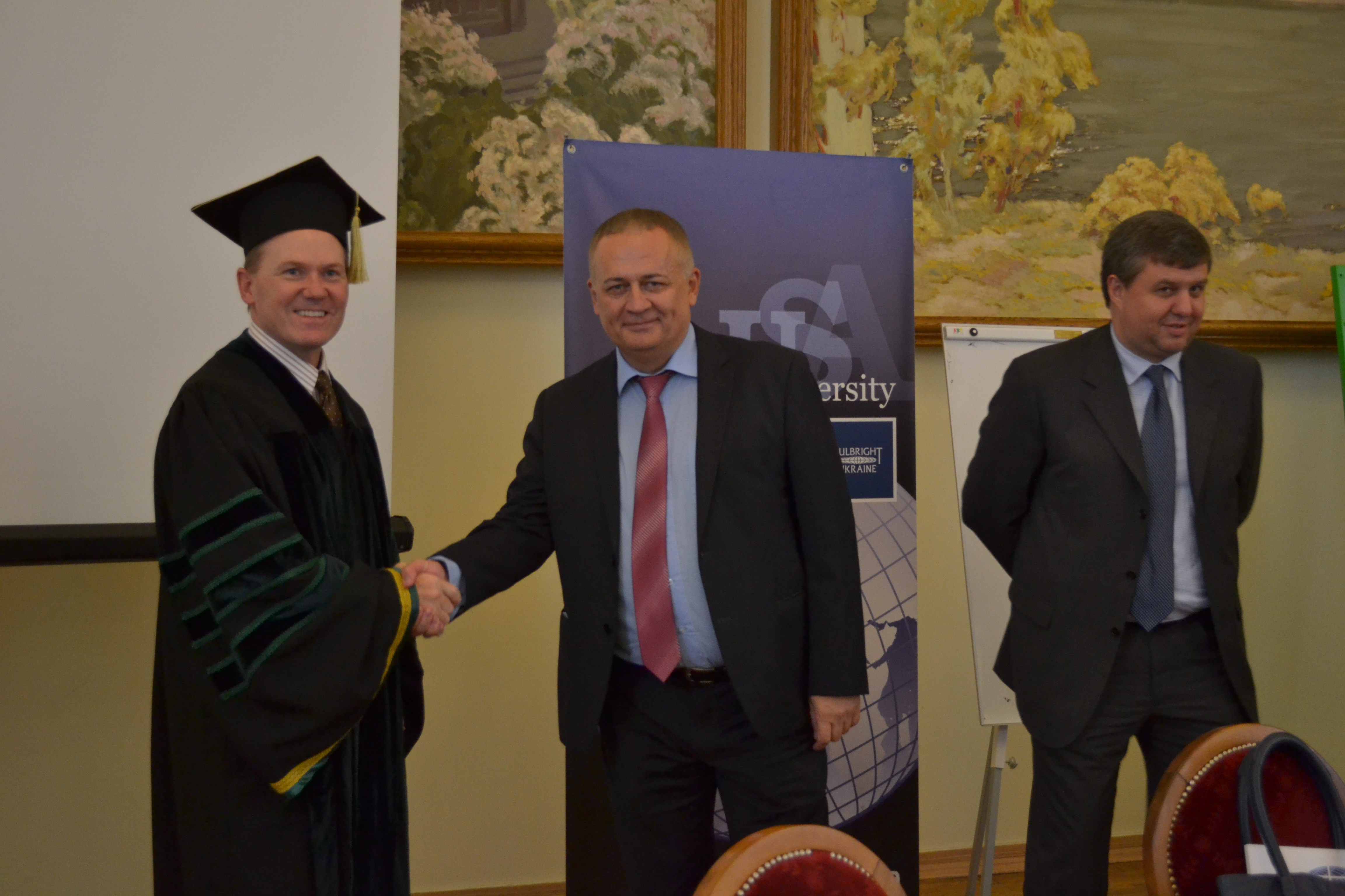 Київський національний економічний університет вітає Джеральда Грошека, професора університету Редлендс, США, з почесною нагородою – присвоєнням звання Почесного Доктору нашого університету09 Жовтня 2015р.