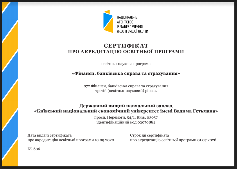 - Успішна акредитація програми PhD Фінанси, банківська справа та страхування