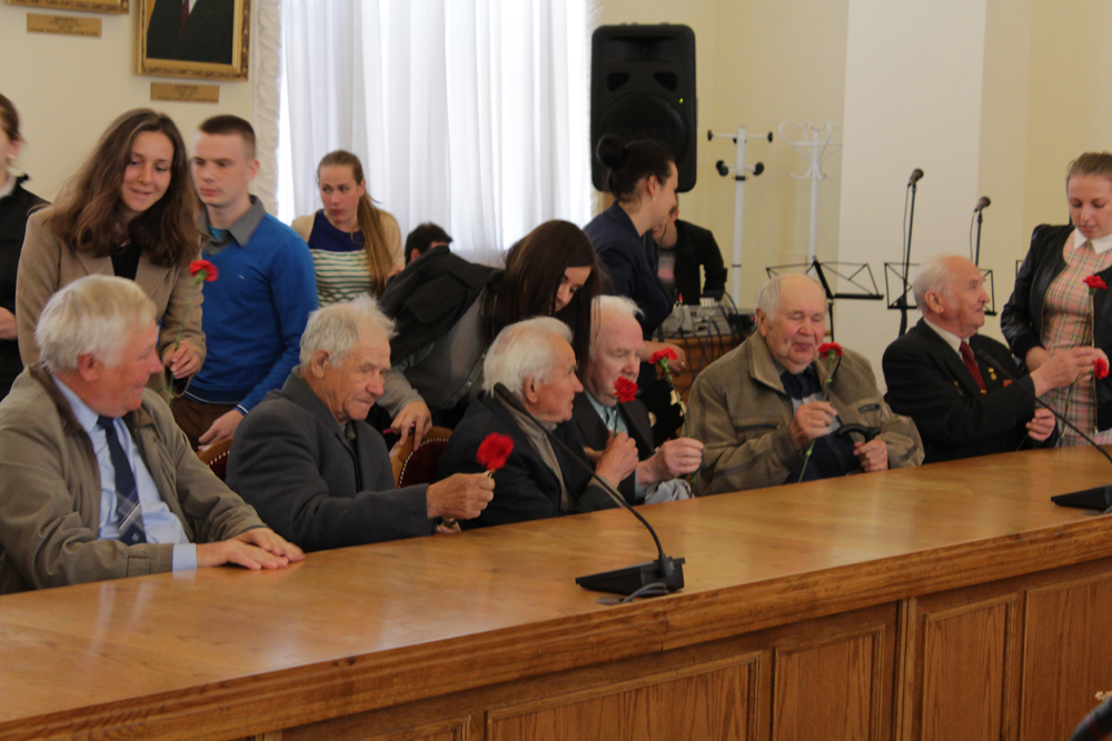 6 травня у Київському національному економічному університеті імені Вадима Гетьмана відбулися збори ветеранів Великої Вітчизняної війни, присвячені 69-й річниці Перемоги. Щоб привітати ветеранів у приміщенні конференц-залу зібралися студенти та співробітники університету.