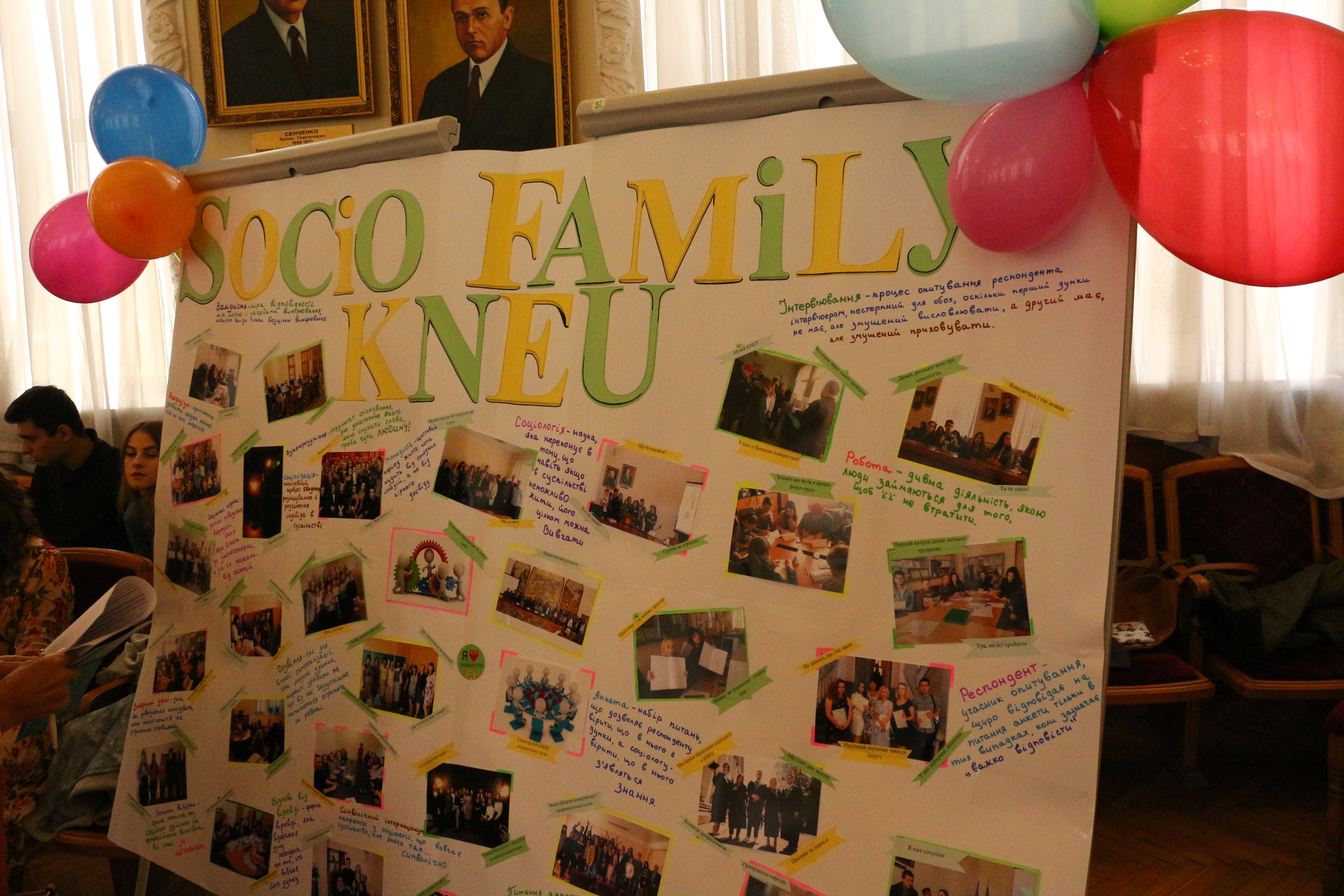З нагоди Дня соціолога (1 жовтня), який відзначається в Україні з 2011 року, кафедра соціології факультету управління персоналом, соціології та психології підготувала всім студентам та співробітникам подарунки, а також у конференц-залі організувала справжнє свято. «Цього року на спеціальність «соціологія» вступили 24 студенти, - інформувала декан факультету Світлана Олексіївна Цимбалюк. - Я також бажаю якісного примноження, а колегам - активно брати участь у міжнародних проектах». «Ми, як лікарі, маємо вчасно поставити діагноз, - зазначила завідувач кафедри соціології Оксана Борисівна Гаєвська. – Вчасно поставити діагноз, тобто знайти ефективні методи, спрямувати роботу – це вже половина успіху». Студенти всіх курсів влучно, дотепно та, надаючи корисну інформацію, представили викладачів та свої групи. Доцент кафедри соціології Владислав Володимирович Горбов, а також інші викладачі вручили усім посвідчення соціолога.