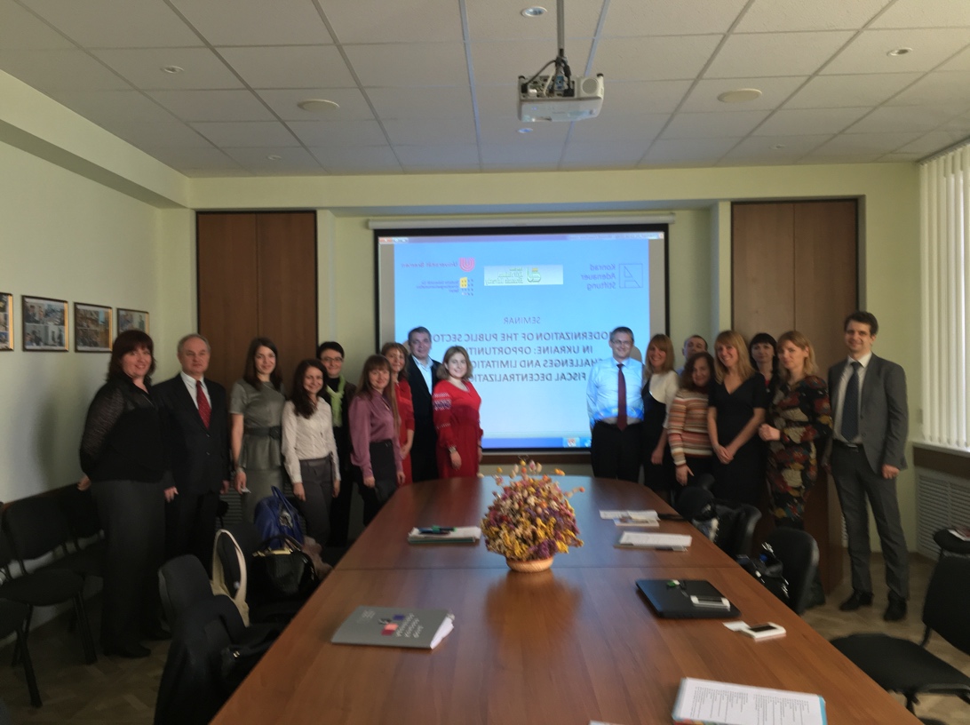 У квітні 2016 року у ДВНЗ “КНЕУ ім. В. Гетьмана” було проведено Перший міжнародний семінар “Модернізація сектору публічних фінансів в Україні: виклики, можливості та обмеження фіскальної децентралізації”. Даний захід було організовано кафедрою фінансів, Радою молодих вчених ДВНЗ ”КНЕУ ім. В. Гетьмана”, Університетом м. Бремен (Німеччина), Німецьким університетом управлінських наук м. Шпеєр (Німеччина) за підтримки Представництва Фонду Конрада Аденауера в Україні.