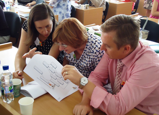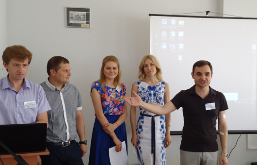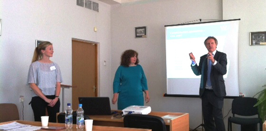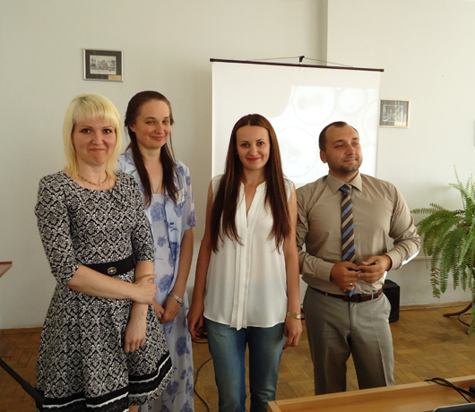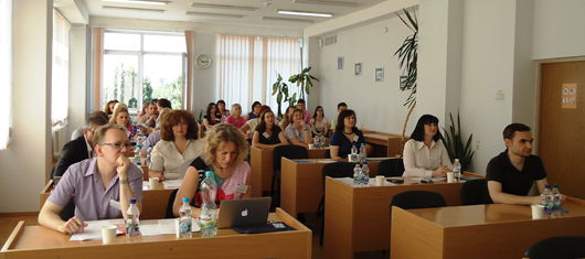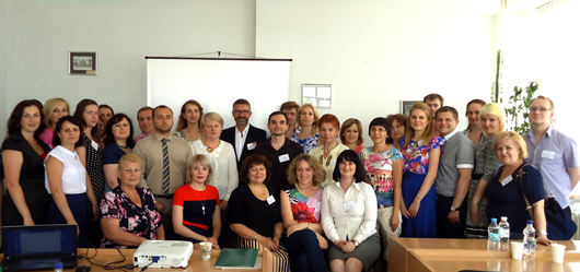 КОНСУЛЬТАЦІЙНИЙ СЕМІНАР ТА ПОШИРЕННЯ РЕЗУЛЬТАТІВ ПРОЕКТУ ЄС ТЕМПУС BUSEEG-RU-UA В ДВНЗ «КНЕУ ім. ВАДИМА ГЕТЬМАНА»26 Червня 2015р.23-25 червня 2015 року у ДВНЗ «КНЕУ імені Вадима Гетьмана» відбулись консультаційний семінар та розповсюдження результатів проекту ЄС Темпус «Набуття професійних і підприємницьких навичок за допомогою виховання підприємницького духу та консультації підприємців-початківців» 544202-TEMPUS-1-2013-1-AT-TEMPUS-JPHES (BUSEEG-RU-UA). У роботі семінару взяли участь команди проекту від Віденського економічного університету, Університету м. Констанц, Київського національного економічного університету ім. Вадима Гетьмана та Нижньоновгородського державного університету ім. М.І. Лобачевського, представник Торгово-промислової палати України, а також викладачі КНЕУ, Економічного коледжу та Коледжу інформаційних систем і технологій КНЕУ. Цілями консультаційного семінару було підведення підсумків курсів підвищення кваліфікації викладачів КНЕУ, індивідуальна консультація розробників матеріалів, дисемінація результатів проекту, виступи та майстер-класи.
