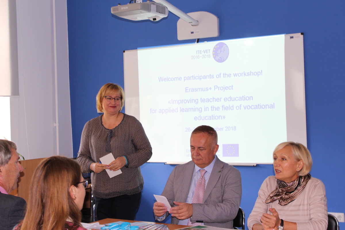 Три дні поспіль (26-28 вересня) у головному корпусі університету триває заключна робоча зустріч учасників проекту Erasmus+ «Удосконалення практико-орієнтованої підготовки викладачів професійної освіти і навчання (2016-2018) (ITE-VET)». У проекті беруть участь представники вишів України, Іспанії, Австрії та Німеччини. Зазначимо, що КНЕУ ім. Вадима Гетьмана є координатором проекту в межах України.