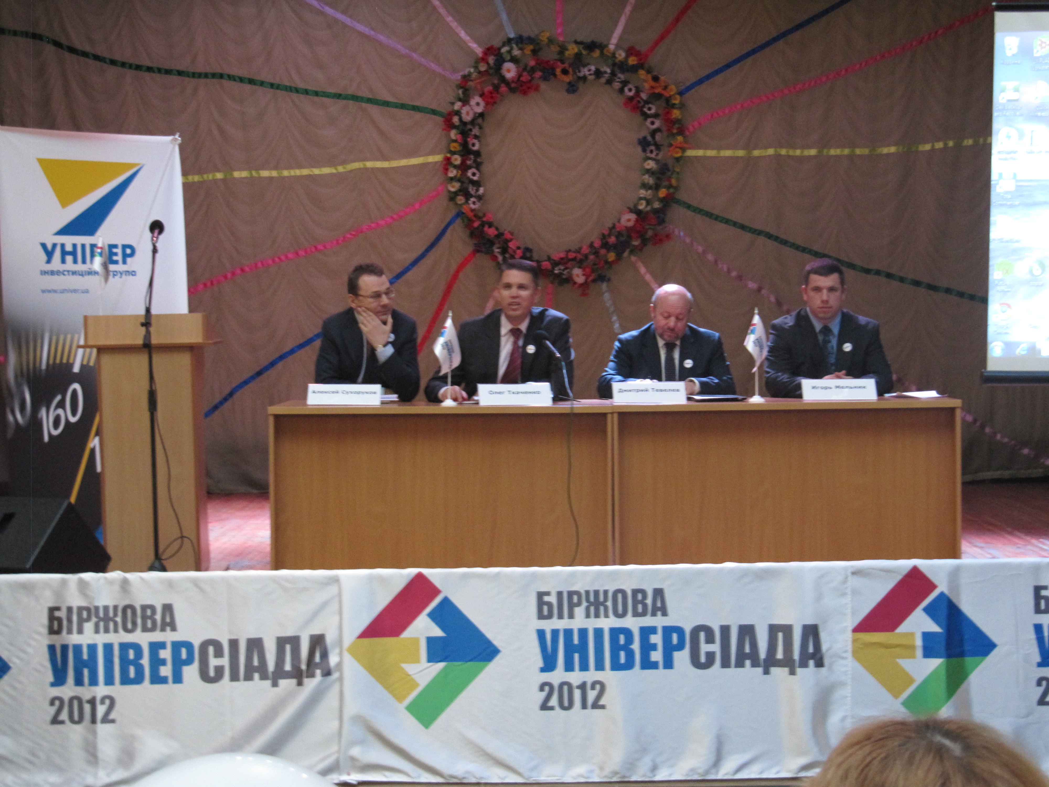 31 січня 2012 року в Київському міському будинку учителя відбулося урочисте відкриття конкурсу з біржової торгівлі - "Біржова Універсіада 2012" за участі понад 300 студентів з 45 вищих учбових закладів України.