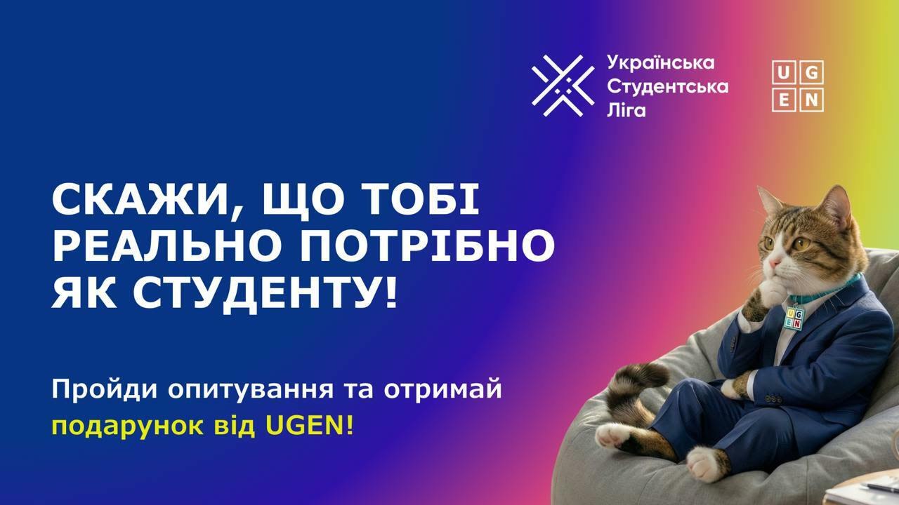 Саме тому UGEN разом з Українською студентською лігою запускають опитування, щоб почути твою думку.