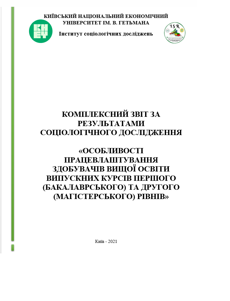 - Дослідження «Особливості працевлаштування здобувачів вищої освіти випускних курсів першого (бакалаврського) та другого (магістерського) рівнів»