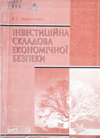 Інвестиційна складова економічної безпеки  | Кириленко В.І. Інвестиційна складова економічної безпеки: монографія. — К.: КНЕУ, 2005. — 232 с. У монографії системно викладені теоретичні та методологічні аспекти гарантування економічної безпеки через активізацію інвестиційної діяльності, формування інвестиційної безпеки. Аналізуються методологічні засади аналізу сучасного етапу інвестиційної безпеки в Україні, досліджується інвестиційно-інноваційна складова економічної безпеки. Особлива увага приділяється проблемам урахування інвестиційної безпеки щодо формування інвестиційної політики. Різноманітний методичний матеріал, наявність схем, рисунків і таблиць роблять працю інформативною, а застосування математичного апарату й економічних алгоритмів дають змогу створити комплексний інструментарій оцінки інвестиційної безпеки економічної системи. Розрахована на управлінців та фахівців, які займаються проблемами інвестування, наукових працівників, викладачів, аспірантів і студентів економічних спеціальностей. | | | | ЗМІСТ | | | Вступ | 4 | | Розділ І. МЕТОДОЛОГІЧНІ ЗАСАДИ АНАЛІЗУ ІНВЕСТИЦІЙНОЇ СКЛАДОВОЇ ЕКОНОМІЧНОЇ БЕЗПЕКИ | 7 | | 1.1. Економічна безпека в економічній системі | 7 | | 1.2. Інвестиції в гарантуванні економічної безпеки | 32 | | 1.3. Передумови ринкової трансформації інвестиційної складової економічної безпеки | 56 | | Розділ 2. РЕАЛІЗАЦІЯ ІНВЕСТИЦІЙНОЇ ДІЯЛЬНОСТІ В КОНТЕКСТІ ГАРАНТУВАННЯ ЕКОНОМІЧНОЇ БЕЗПЕКИ | 70 | | 2.1. Системоутворюючі категорії інвестиційної складової економічної безпеки | 70 | | 2.2. Інвестиційна політика як фактор гарантування економічної безпеки | 79 | | 2.3 Принципи реалізації інвестиційної безпеки | 96 | | 2.4. Механізм реалізації інвестиційної безпеки | 110 | | Розділ 3. ІННОВАЦІЙНА СПРЯМОВАНІСТЬ ІНВЕСТИЦІЙНОЇ БЕЗПЕКИ | 130 | | 3.1. Об’єктивна необхідність посилення інноваційного характеру інвестиційної безпеки | 130 | | 3.2. Напрями формування інноваційного інвестування економічної безпеки | 153 | | 3.3. Особливості інноваційно-інвестиційного гарантування економічної безпеки України | 161 | | Розділ 4. ІНСТИТУЦЮНАЛЬНІ КРИТЕРІЇ ІНВЕСТИЦІЙНОЇ БЕЗПЕКИ | 170 | | 4.1. Система індикаторів інвестиційної безпеки | 170 | | 4.2. Методи діагностики інвестиційної безпеки | 194 | | 4.3. Аналітичне та прогнозне моделювання майбутнього стану інвестиційної безпеки | 203 | | Висновки | 218 | | Використана література | 222 |