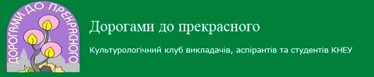 Культурологічний клуб “Дорогами до прекрасного” – добровільна спільнота викладачів, співробітників, аспірантів та студентів Київського національного економічного університету, що об’єднує всіх бажаючих вивчати надбання світової культури, популяризувати загально цікаве й застосовувати знайдене в навчальному процесі.